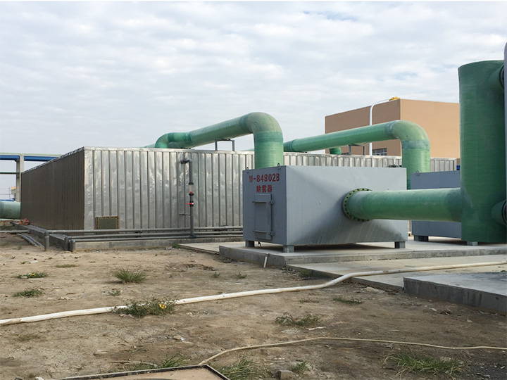 復合生物除臭廢氣處理設備結合了生物洗滌,生物滴濾和生物過濾法三種生物技術。臭氣經導入口進洗滌區,經前級水或濃度化學洗液洗滌,在洗滌區完成了對臭氣的水域化學劑的吸收,除塵及加濕的預處理。